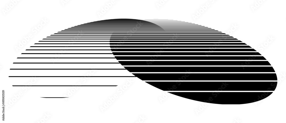 The watermark will not be included on Canvas Print.: Transition in two circles with parallel lines - abstract art geometric background for logo, icon, des