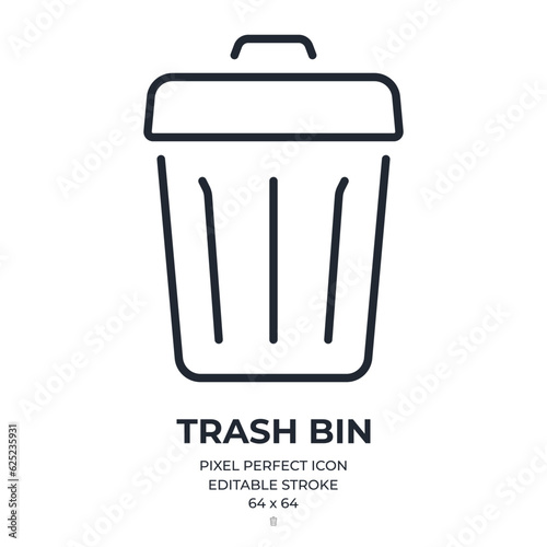 The watermark will not be included on Canvas Print.: Trash bin editable stroke outline icon isolated on white background flat vector illustration - pixel