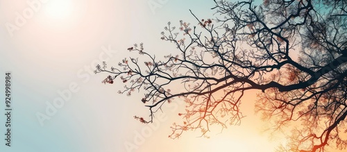 The watermark will not be included on Canvas Print.: Tree branches silhouetted against the sky with copy space image nature and ecology themed summer bac