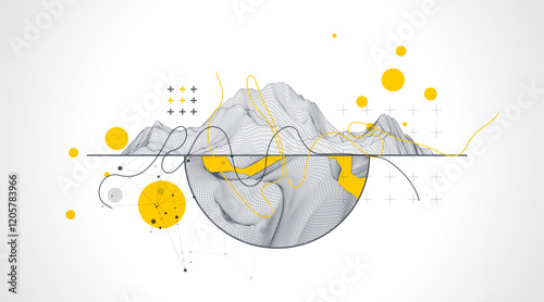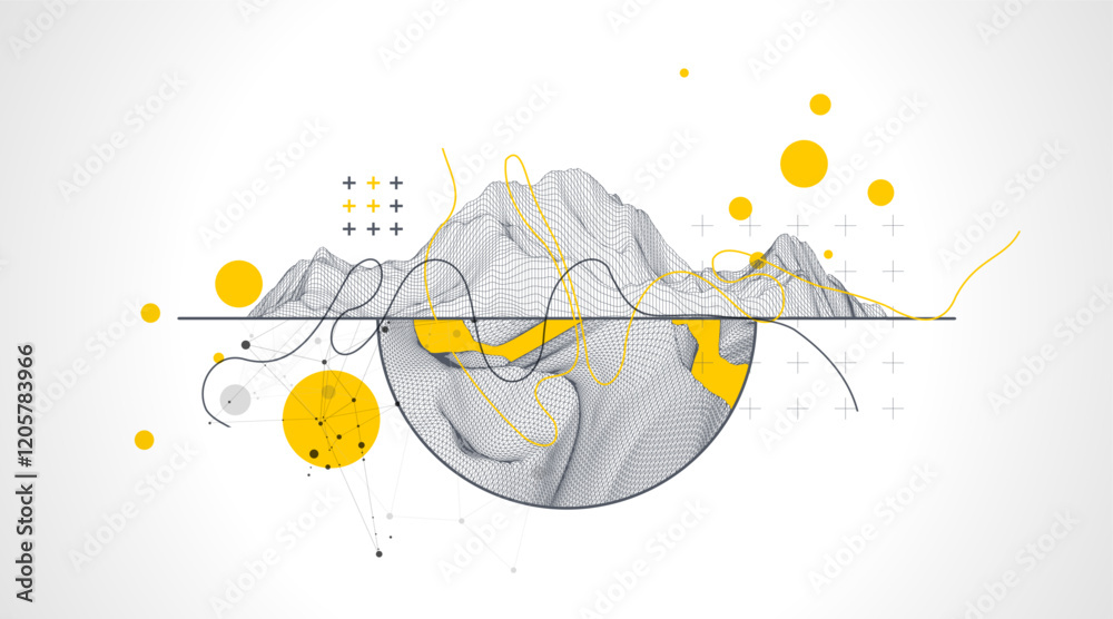 The watermark will not be included on Canvas Print.: Trendy abstract wireframe background - modern science or technology art elements - surface illustratio