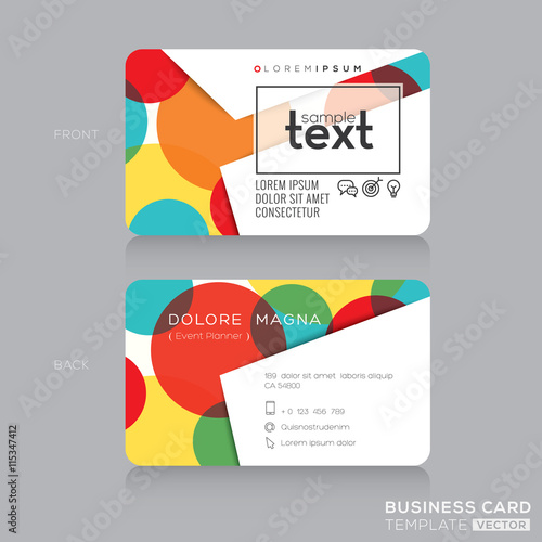 The watermark will not be included on Canvas Print.: Trendy business card template with colorful circles background