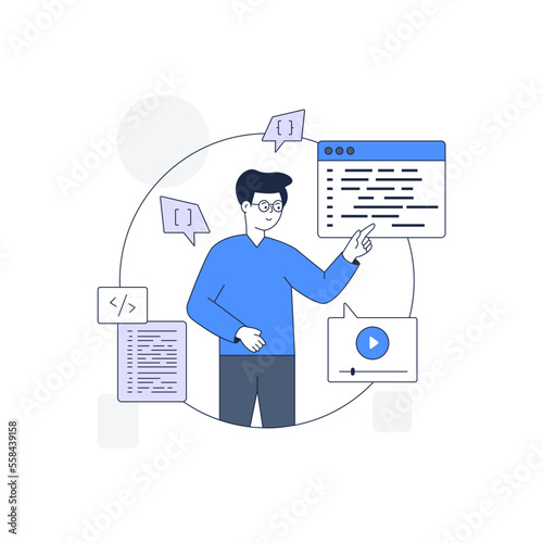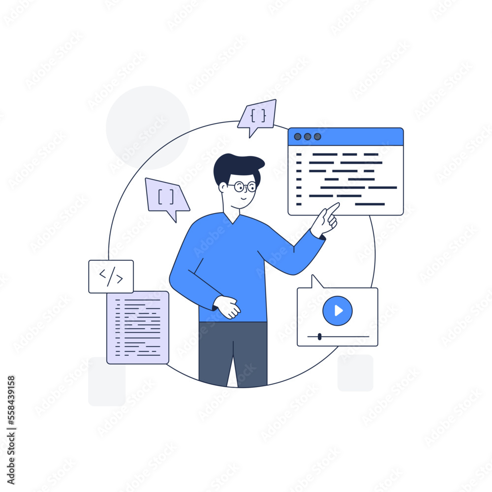 The watermark will not be included on Canvas Print.: Trendy linear illustration of web coder