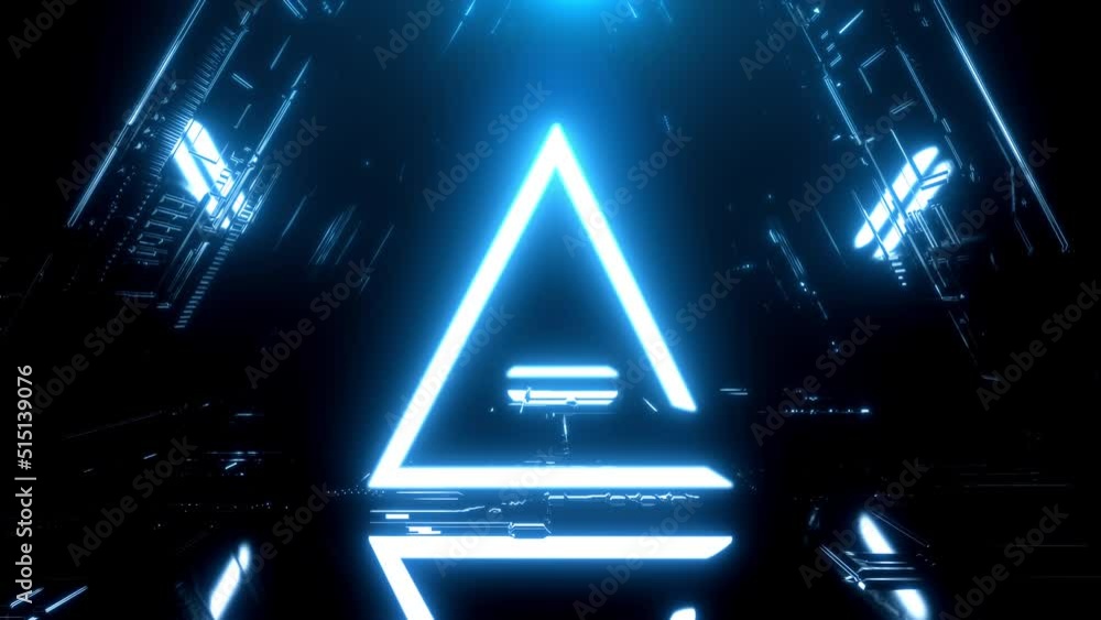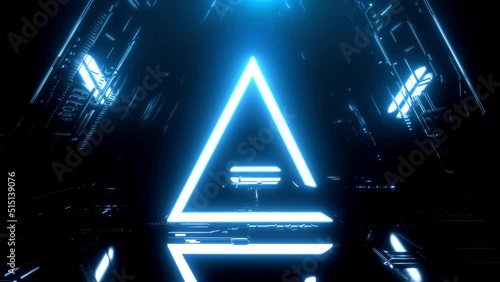 The watermark will not be included on Canvas Print.: Triangle vj neon glow universal background loop - travel passing neon nebula on light bridge with sta