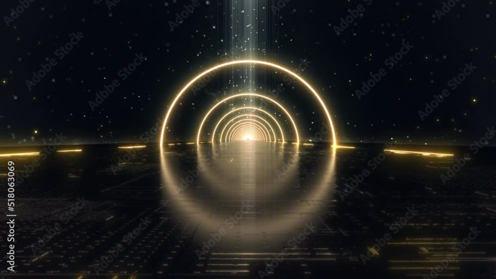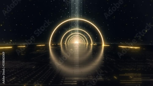 The watermark will not be included on Canvas Print.: Triangle vj neon glow universal background loop - travel passing neon nebula on light bridge with sta