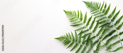 The watermark will not be included on Canvas Print.: Tropical summer fern branch set against a white background flat lay with copyspace