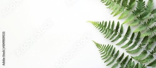 The watermark will not be included on Canvas Print.: Tropical summer fern branch set against a white background flat lay with copyspace