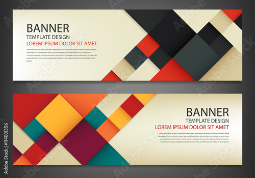 The watermark will not be included on Canvas Print.: Two banners with colorful squares - business design template - horizontal banners vector set -