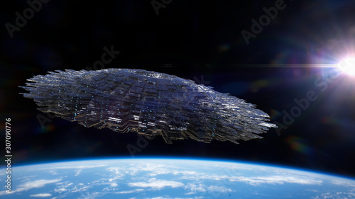 The watermark will not be included on Canvas Print.: Ufo, alien spaceship in orbit of planet earth