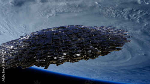 The watermark will not be included on Canvas Print.: Ufo, alien spaceship in orbit of planet earth