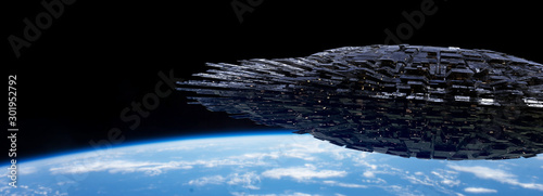 Canvas Print : Ufo, alien spaceship in orbit of planet earth