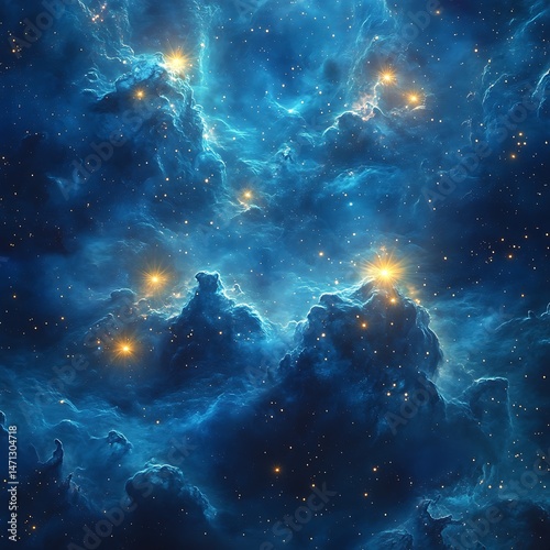 The watermark will not be included on Canvas Print.: Vast space nebula art with glowing stars nestled within hyper-realistic gas formations -