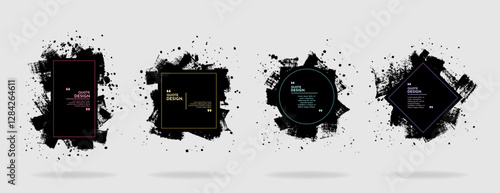 The watermark will not be included on Canvas Print.: Vector background for text - grunge banners set - black paint - ink brush stroke with geometric linear