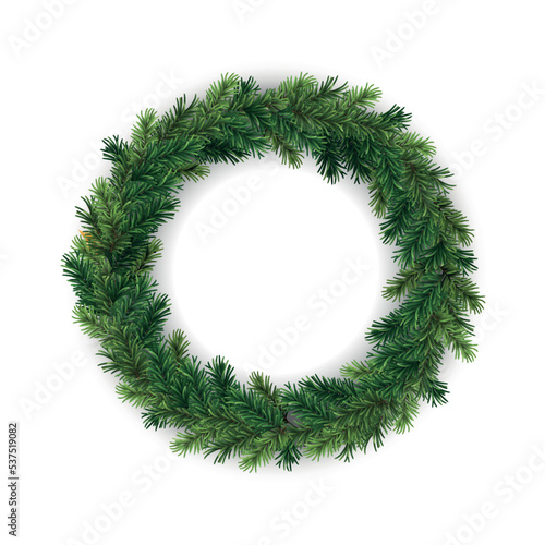 The watermark will not be included on Canvas Print.: Vector christmas decorative round wreath frame with coniferous branches isolated on white background