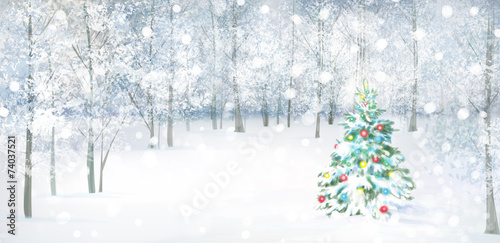 The watermark will not be included on Canvas Print.: Vector christmas tree in snowy forest -