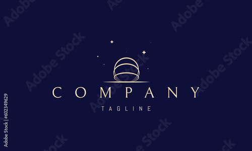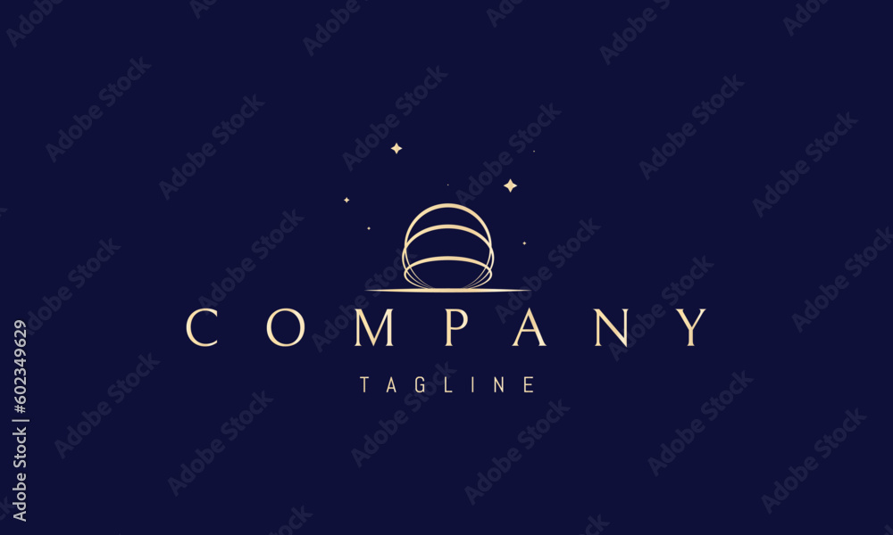 The watermark will not be included on Canvas Print.: Vector golden logo on which an abstract image of several celestial spheres against the background of