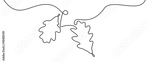 The watermark will not be included on Canvas Print.: Vector illustration of two oak leaves connected by a flowing line, perfect for simple and elegant de