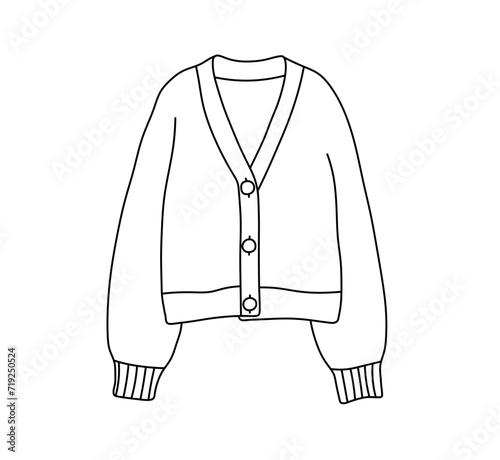 The watermark will not be included on Canvas Print.: Vector isolated one single simple cardigan jacket knitwear front view colorless black and white cont