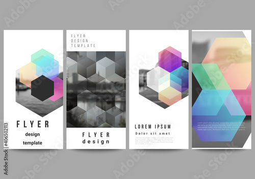 The watermark will not be included on Canvas Print.: Vector layout of flyer, banner design templates with colorful hexagons, geometric shapes, tech backg