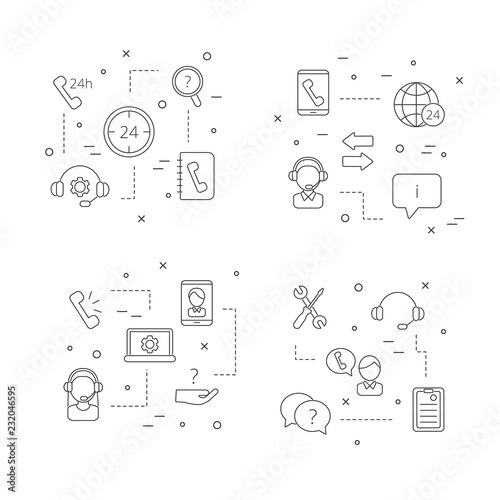 Canvas Prints vector line call support center icons infographic concept illustration isolated on white background