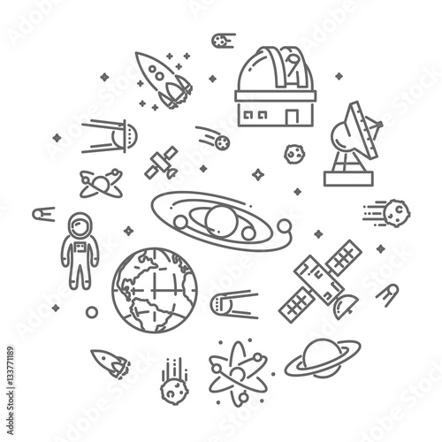 The watermark will not be included on Canvas Print.: Vector line round concept for astronomy