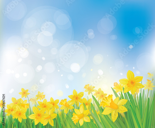 Canvas Prints vector of daffodil flowers on spring background. - Canvas Prints Canvas Prints vector of daffodil flowers on spring background. - Canvas Prints