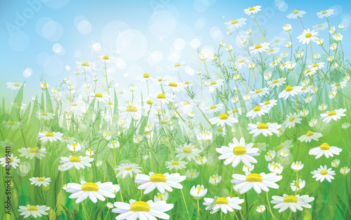 The watermark will not be included on Canvas Print.: Vector of spring background with white daisies -
