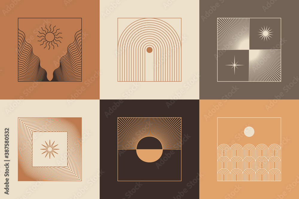 Canvas Prints vector set of linear boho icons and symbols - sun logo design templates and pritns - abstract design