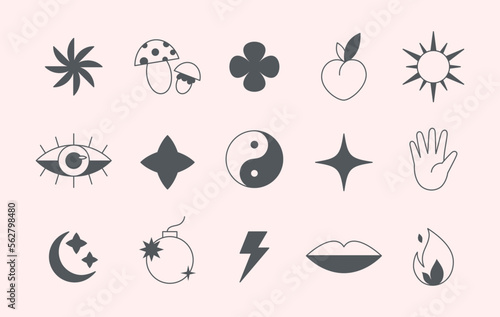 Canvas Print : Vector set of linear fun patches,stickers,geometric shapes in 90s style - abstract icons or symbols in