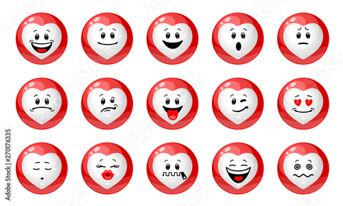 Canvas Prints vector set of love emoticons. collection of red balls with white heart shapes with different emotion