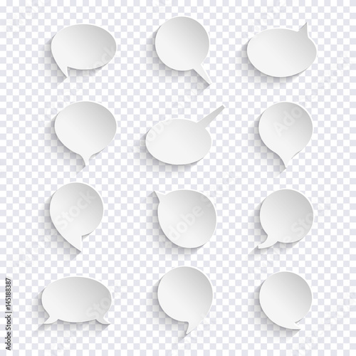 The watermark will not be included on Canvas Print.: Vector set of paper white round speech bubbles icons