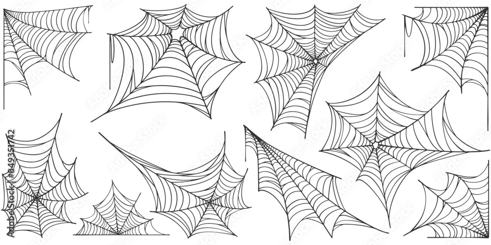 The watermark will not be included on Canvas Print.: Vector set of spider web on white