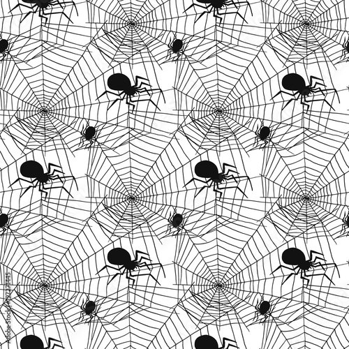 The watermark will not be included on Canvas Print.: Vector spider web silhouette spooky spiders seamless pattern background halloween cobweb decoration