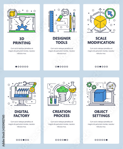 Canvas Print : Vector web site linear art onboarding screens template - 3d printing and designer tools - menu banners