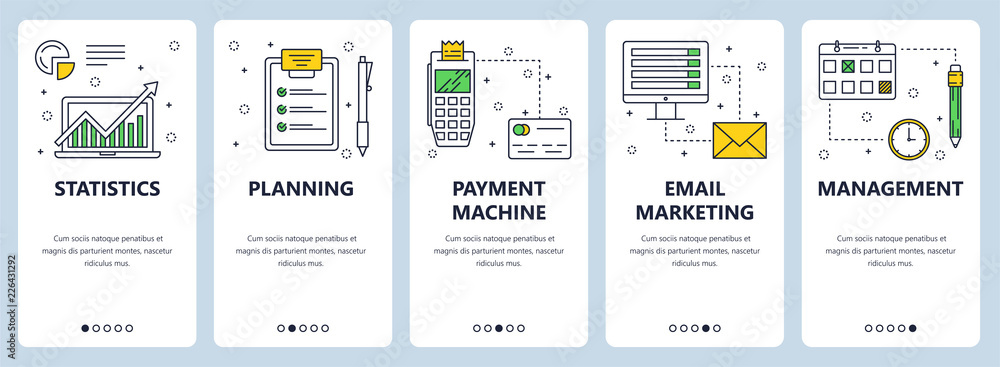 Canvas Print : Vector web site linear art onboarding screens template - statistic, planing and marketing icons - menu