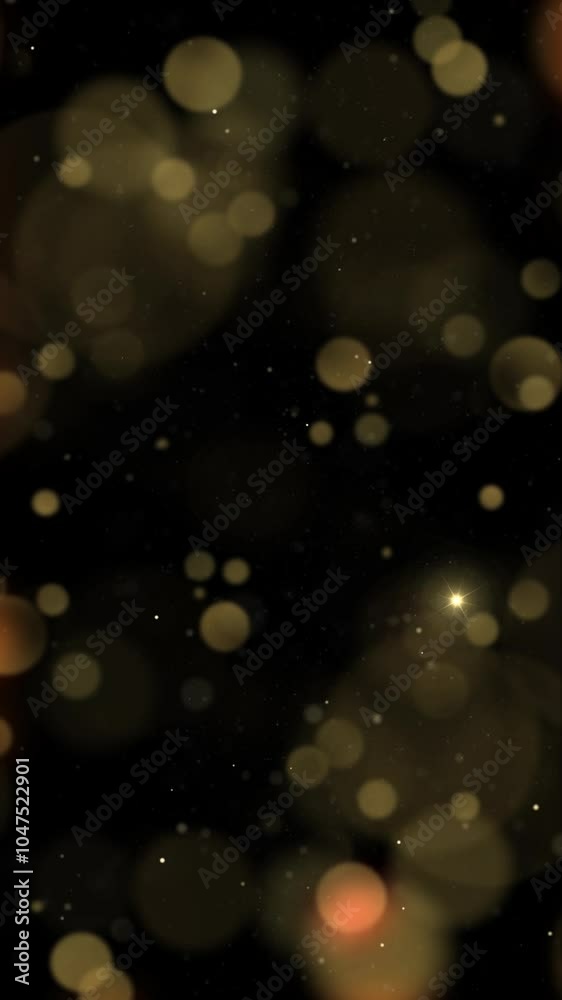 The watermark will not be included on Canvas Print.: Vertical golden bokeh particle holiday dance 4k loop features a field of black with glowing yellow a