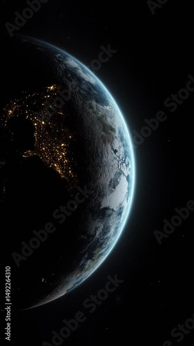 The watermark will not be included on Canvas Print.: Vertical video of planet earth slowly spinning in open space with dense thick atmosphere with stars