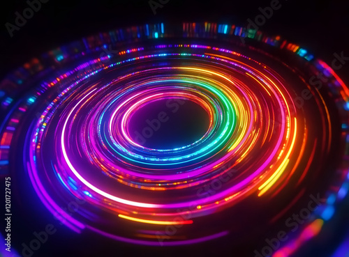 Canvas Prints vibrant, concentric neon rings glow in the dark, creating a mesmerizing circular light display. the