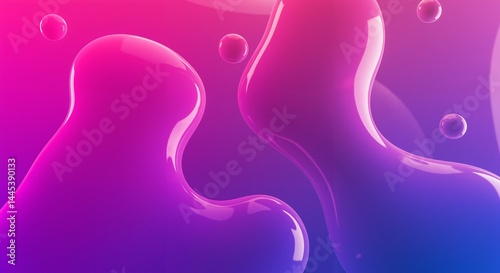 The watermark will not be included on Canvas Print.: Vibrant abstract background featuring smooth fluid shapes in shades of pink and blue, creating a dyn