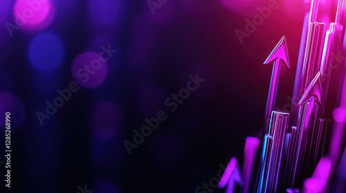 The watermark will not be included on Canvas Print.: Vibrant abstract background with upward arrows symbolizing growth and progress in a digital space