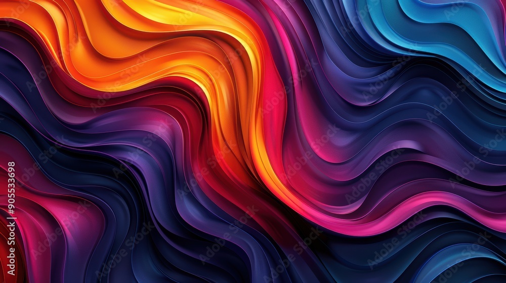 The watermark will not be included on Canvas Print.: Vibrant abstract waves in bold colors create a mesmerizing background for digital design and creativ