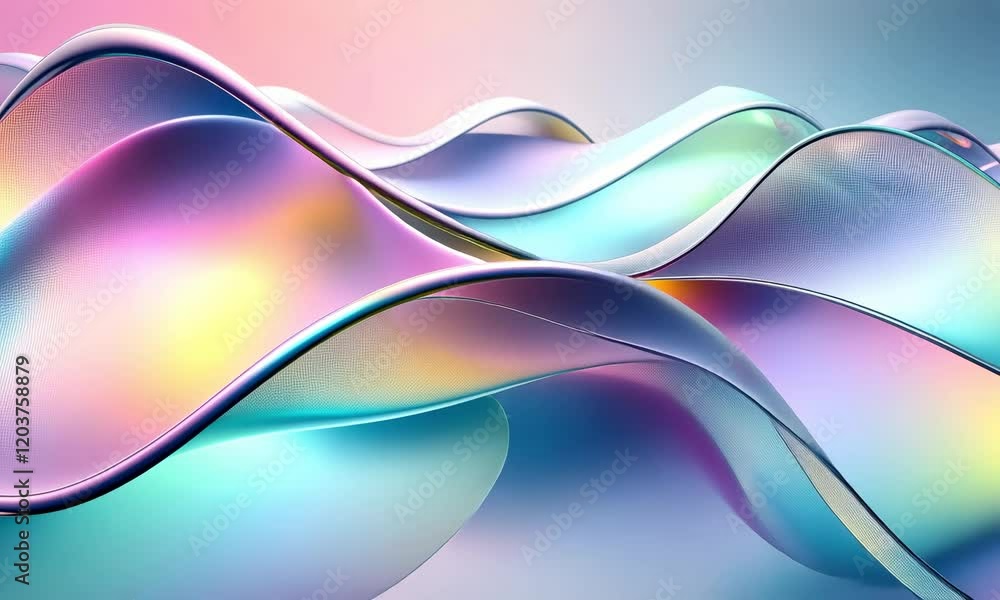 The watermark will not be included on Canvas Print.: Vibrant abstract waves in soft pastels - fluid motion and colorful reflection for creative projects
