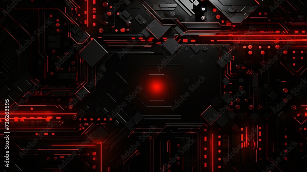 The watermark will not be included on Canvas Print.: Vibrant black and red digital tech backdrop - futuristic abstract design for creative projects