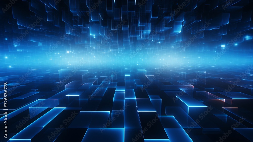 The watermark will not be included on Canvas Print.: Vibrant blue abstract tech background with geometric shapes