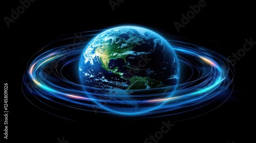 The watermark will not be included on Canvas Print.: Vibrant earth with dynamic motion and light effects in space