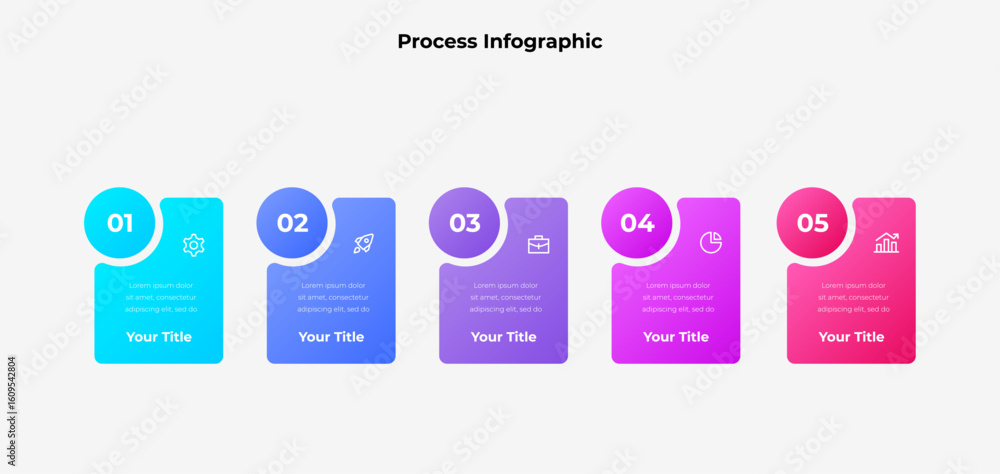 Canvas Print : Vibrant five step infographic displaying process flow, suitable for business and project organizatio
