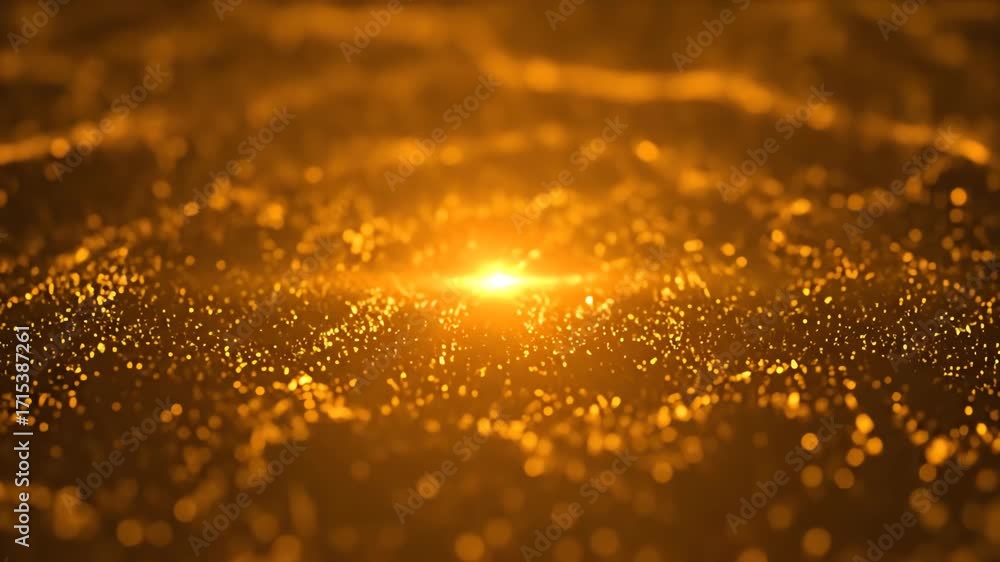 The watermark will not be included on Canvas Print.: Vibrant golden particles create a warm, pulsing flare, slowly rippling outwards in a seamlessly loop