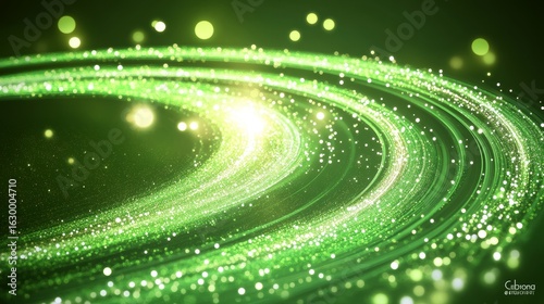 Canvas Prints vibrant green abstract swirl with glowing particles and bokeh background for festive celebrations