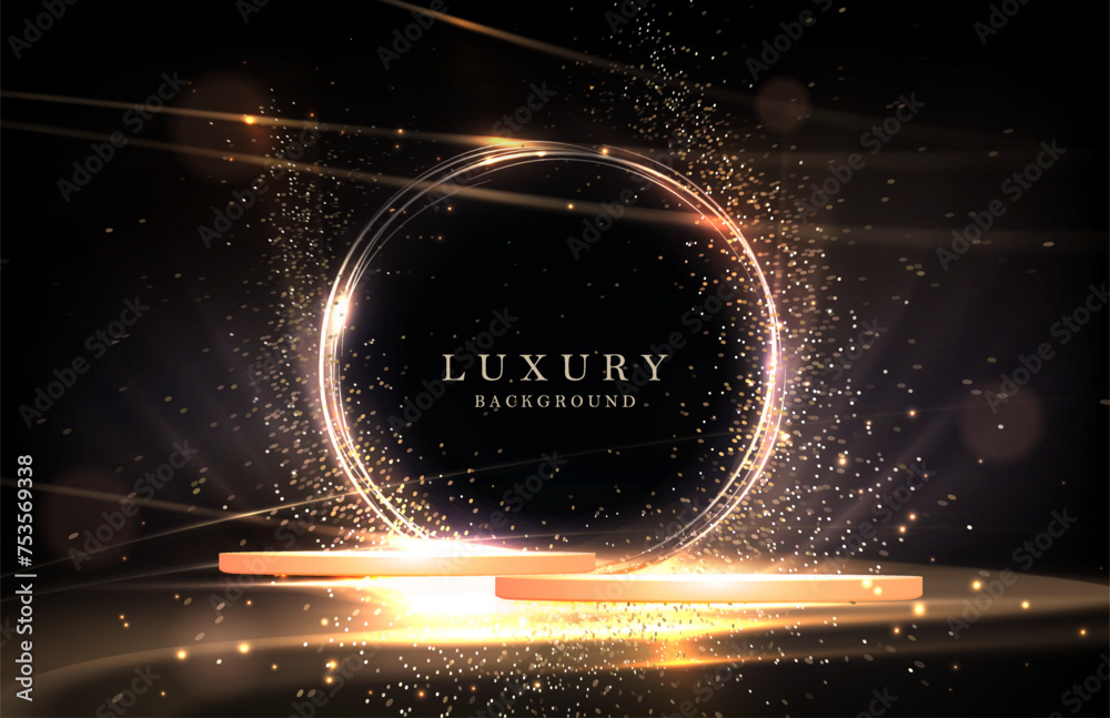 The watermark will not be included on Canvas Print.: Vibrant illustration with a bright yellow podium and an abstract round frame with sparkling tinsel -