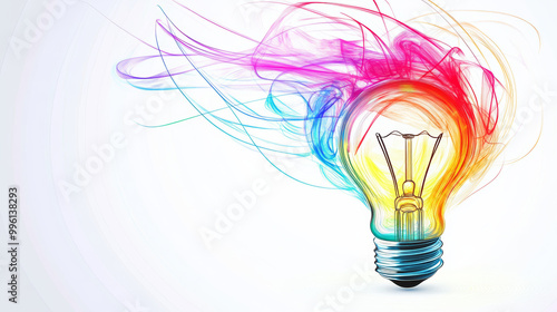 The watermark will not be included on Canvas Print.: Vibrant light bulb surrounded by swirling colorful lines creates dynamic and energetic visual - inter