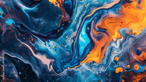 The watermark will not be included on Canvas Print.: Vibrant liquid abstract background with flowing swirls of colorful paint, dynamic fluid art with mar